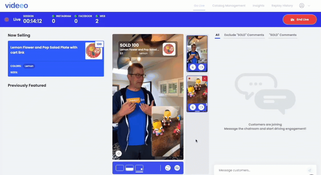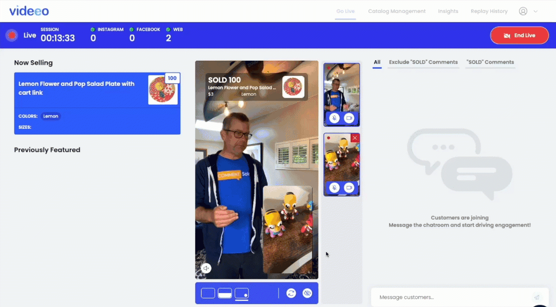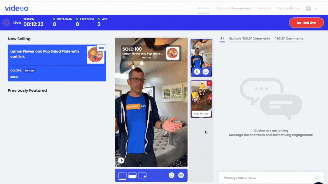 With multi-host, you can add an additional host feed to your live sale. It’s a great opportunity to bring in guest speakers, customers, or personalities to boost viewership, engagement, and purchases.