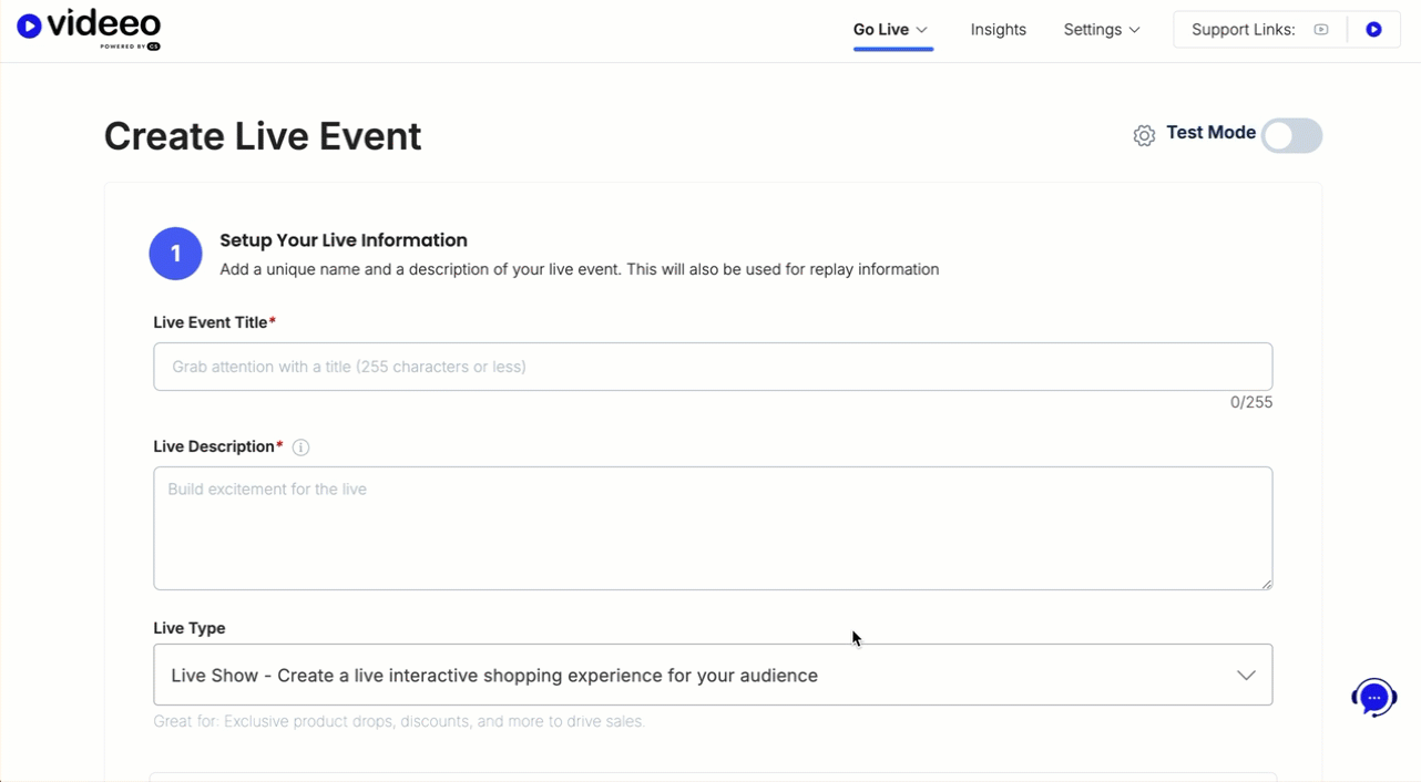 - Enter a Live Event Title.