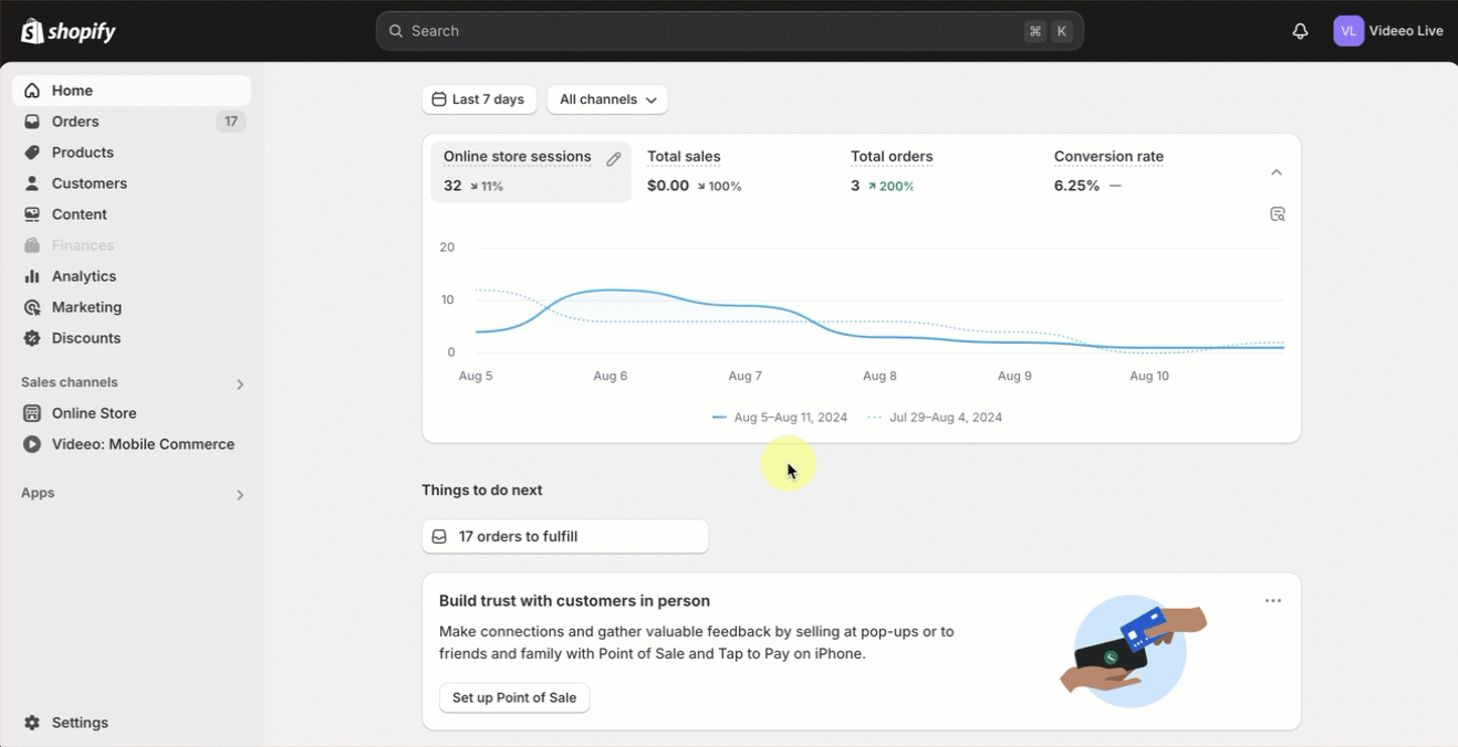 - Select Videeo: Mobile Commerce under Sales Channels from the side menu.