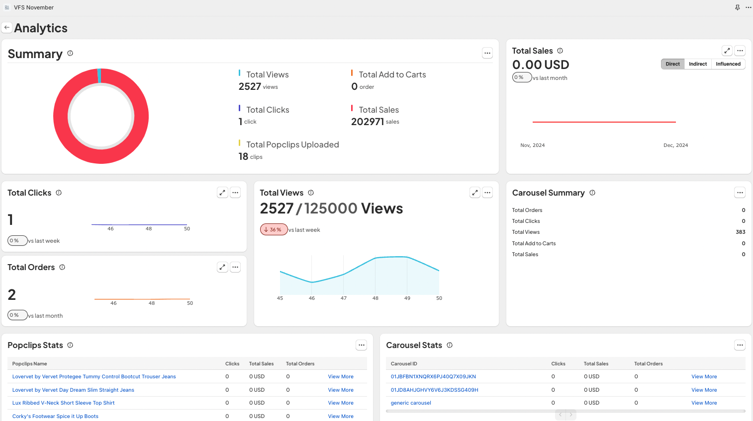 - Orders and Sales: See both direct orders (from Popclip interactions) and influenced orders (purchases made after watching a Popclip).