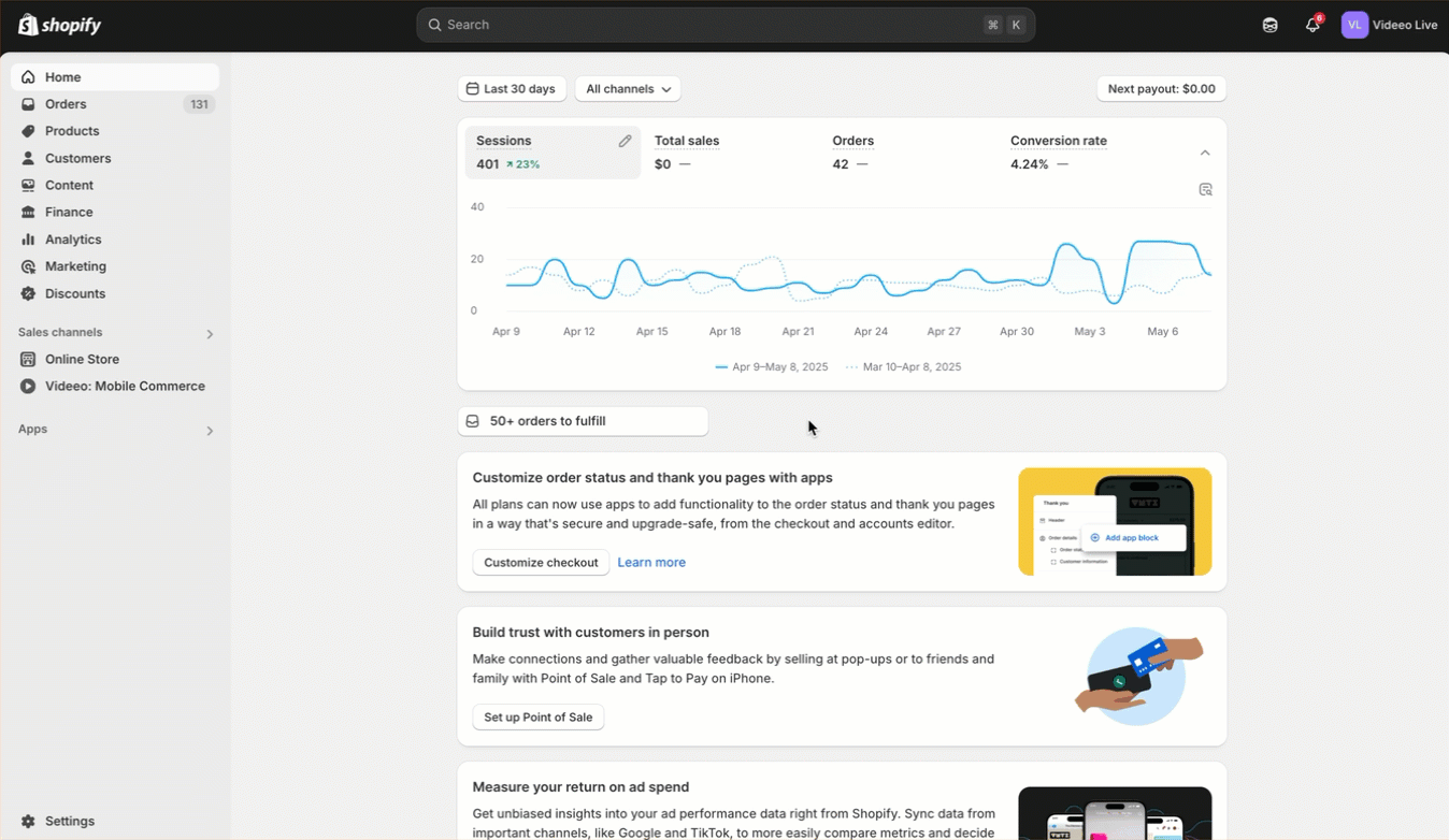 - Select Videeo: Mobile Commerce under Sales Channels from the side menu.