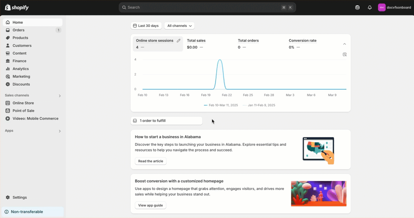 - Select Videeo: Mobile Commerce under the Sales Channel section of your Shopify side menu.